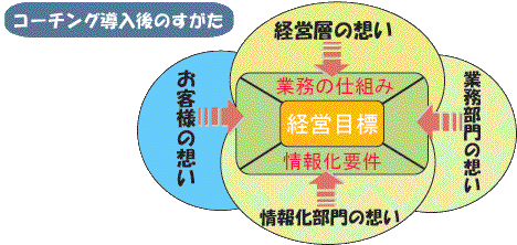 ■コーチングサービス 〜目標達成支援〜■ お客様の想いを反映し、事業の経営目標を実現するために、それぞれが合意できる業務の仕組みと情報化の要件を創出します。